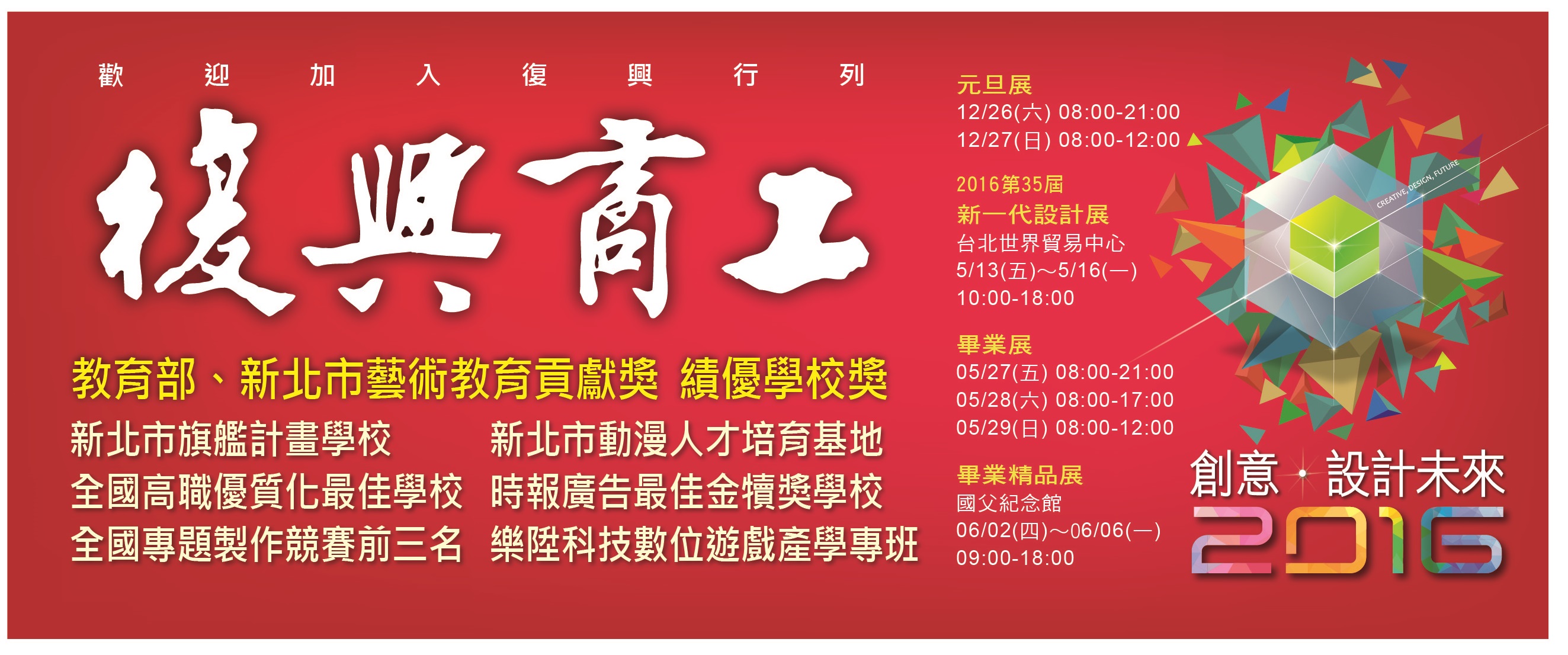 | 摘要 | 新北市新聞網~2016創意.設計未來-復興商工元旦展 | ||||